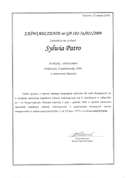 Absolwentka Studium Medycznego w Rzeszowie o kierunku Asystentka Stomatologiczna oraz Higienistka Stomatologiczna.